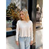 An easy essential with a lived-in twist. This relaxed long sleeve is made from soft waffle thermal with raw-edge seams for that perfectly worn, forever-loved feel.