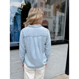 Annalise features a lightweight tencel denim fabric with a button front closure and contrast stitch trim details for the perfect all-seasons top.