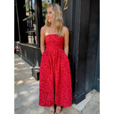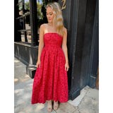 A strapless look with a bubble effect shapes this maxi dress. It has pockets on each side, smocked back, and an invisible zipper in the back.