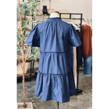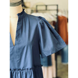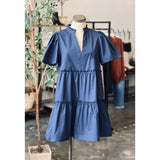 Split neckline with a tiered shift silhouette and deep navy hue, this mini is meant for anything from holiday occasions to the office to a casual day out.