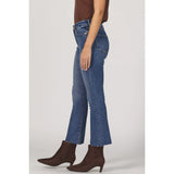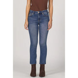 Unparalleled style and comfort with the Jeanne flare jeans in Palmer, featuring a chic mid-rise design and edgy fray hem, expertly crafted from a premium blend of cotton, polyester, rayon, acetate, and spandex for a perfect fit and feel.
