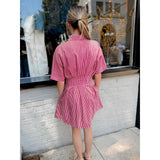 Josilyn features a collared neckline + cinched waistline detail, and is finished with red & white pinstripes for a mini you can dress up or down all season long.