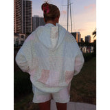 Lola features a quilted patchwork fabric in an oversized silhouette for the ultimate hoodie made for nights on the beach or early morning sunrises.
