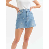 The Malibu Mini in Daze-y is an easy little denim mini inspired by carefree summer days. This flirty skirt comes with embroidered flowers throughout for a floral seasonal touch.