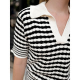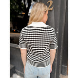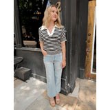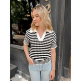 The perfect combination of chic + effortless style and comfort - made with a lightweight knit, this top features a polo collar and striped detail.