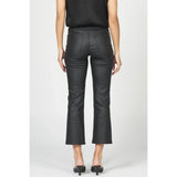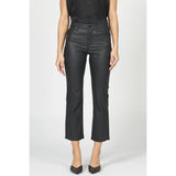 Timeless elegance with Anika straight leg pant in vegan leather, featuring a mid high rise and clean hem. The high-quality craftsmanship offers a flattering fit for a perfect balance of style and comfort combining sleek design with functional utility.