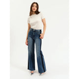 The cool girl jean just got even cooler, Far Out is a modern silhouette with black Tuxedo stripes across the sides of the legs for our take on denim tailored details. In a waist defining high rise, this wide leg is constructed in our "hug" denim that hugs your body, but has just enough weight to keep a structured fit.