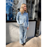 Rylee features a classic denim fabric with an adjustable tie waist and wide leg fit - pair with the matching Rylee Shirt for denim-on-denim perfection.