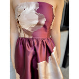 Turn heads in Alexandria: features a strapless silhouette with floral details and finished with a full skirt.