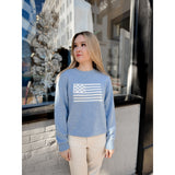 Featuring a crew neckline and embroidered American Flag detail, this easy sweater is perfect to take into spring.