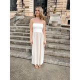 The Getaway Linen Maxi is soon to be your most worn dress: features a ribbed bodice with a linen skirt for a laid back chic look.