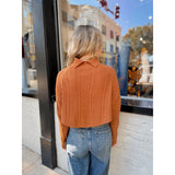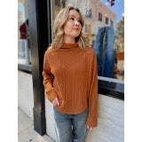 A cable knit with the cutest details: features a foldover turtleneck with split back detail and a reversed hi-lo rounded hem for an ultra flattering fit.