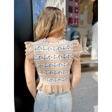The cutest vest that pairs back perfectly with any denim in your closet - features an allover knit with pointelle trim and floral details.