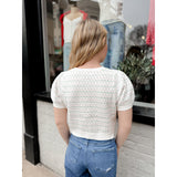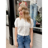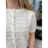 Rosalie features the sweetest pointelle floral details and scallop edge trim with a button front closure.