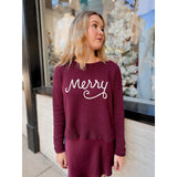 A lightweight cotton knit with an embroidered “Merry” detail brings a touch of joy to your seasonal lineup. Easy to wear solo or layered over denim.