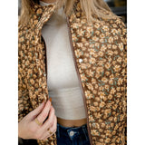 A puffer that makes a statement with fall florals and oversized fit - just add staple layers for an effortlessly chic look.