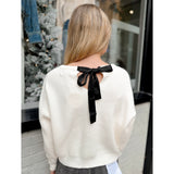 A classic sweater with a feminine bow tie back detail, Clarissa features a dolman sleeve and relaxed fit.