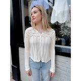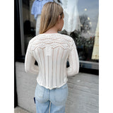 Its lightweight feel and button front make this crewneck cardigan easy to wear and layer. The unique crochet all-over detail updates your everyday top and jeans uniform.