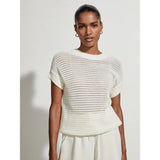 This lightweight layer is crafted in our textured open knit fabric with grown-on short sleeves. It features a classic crewneck and a versatile drawcord hem, perfect for cinching over shorts for a more contemporary, cropped fit.