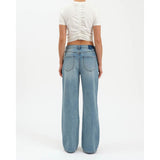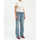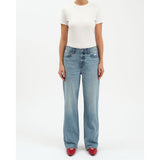The 1999 in Marina Vintage is our signature slouch 90's fit jean featuring distressing at the knees set against a faded medium wash. This vintage-inspired jean is constructed from our Tough Love fabric, which holds its shape but yields to your body in all the right ways.