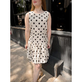 Amanda features a drop waist silhouette with allover polka dots for a classic + flattering must-have mini.