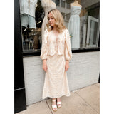 The Camille Eyelet Skirt features delicate floral embroidery and buttery cream hue, finished with scallop detailing on the hem for a touch of femininity. Pair it with the matching top for a stunning set.