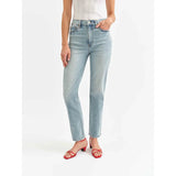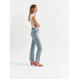 The Smarty Pants in Wink is a tried-and-true high rise slim fit jean. With its timeless light wash, clean hems, and close fit, this polished pair is perfect for your day-to-day. It's made of our Tough Love Fabric, with the perfect mix of rigid and stretch.